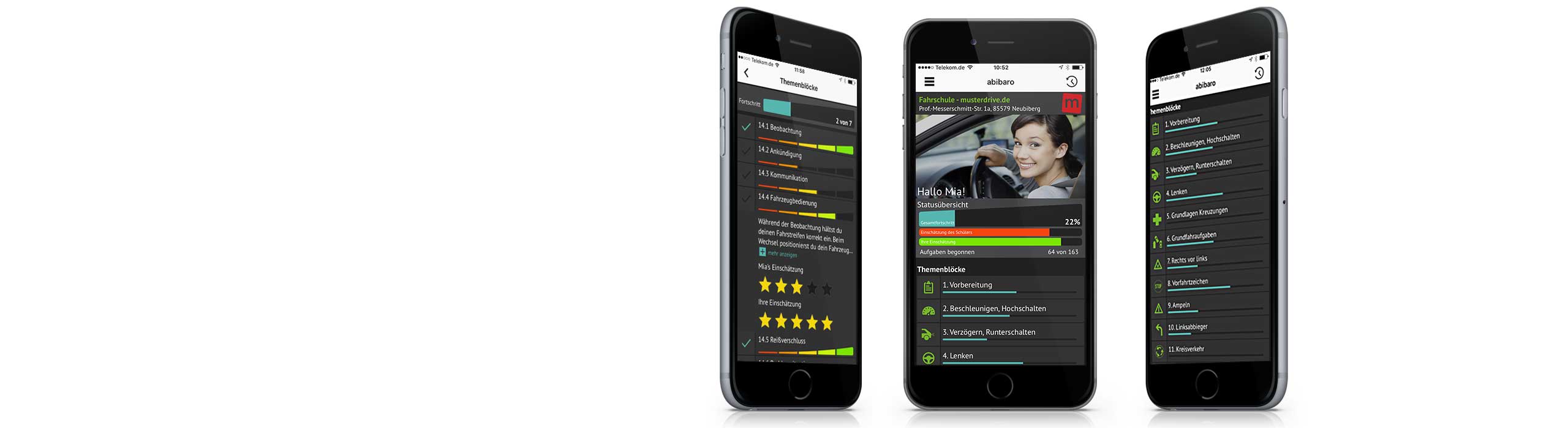 Nie war die praktische Führerscheinausbildung einfacher. Die abibaro-App zeigt dir von Anfang an alle Fahraufgaben, die du für die praktische Fahrerlaubnisprüfung können musst. Deinen aktuellen Ausbildungsstand hast du ab sofort in der Hosentasche.